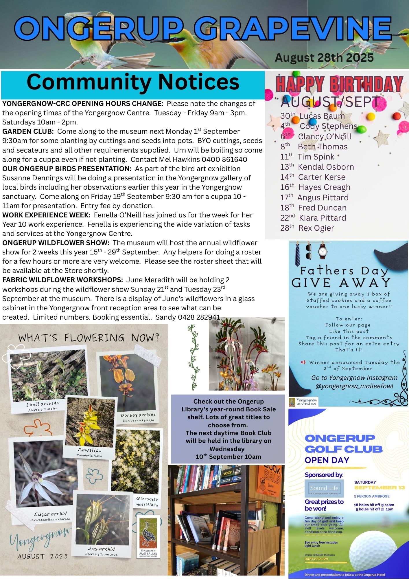 The Ongerup Grapevine is published by the Yongergnow-Ongerup CRC every Thursday.